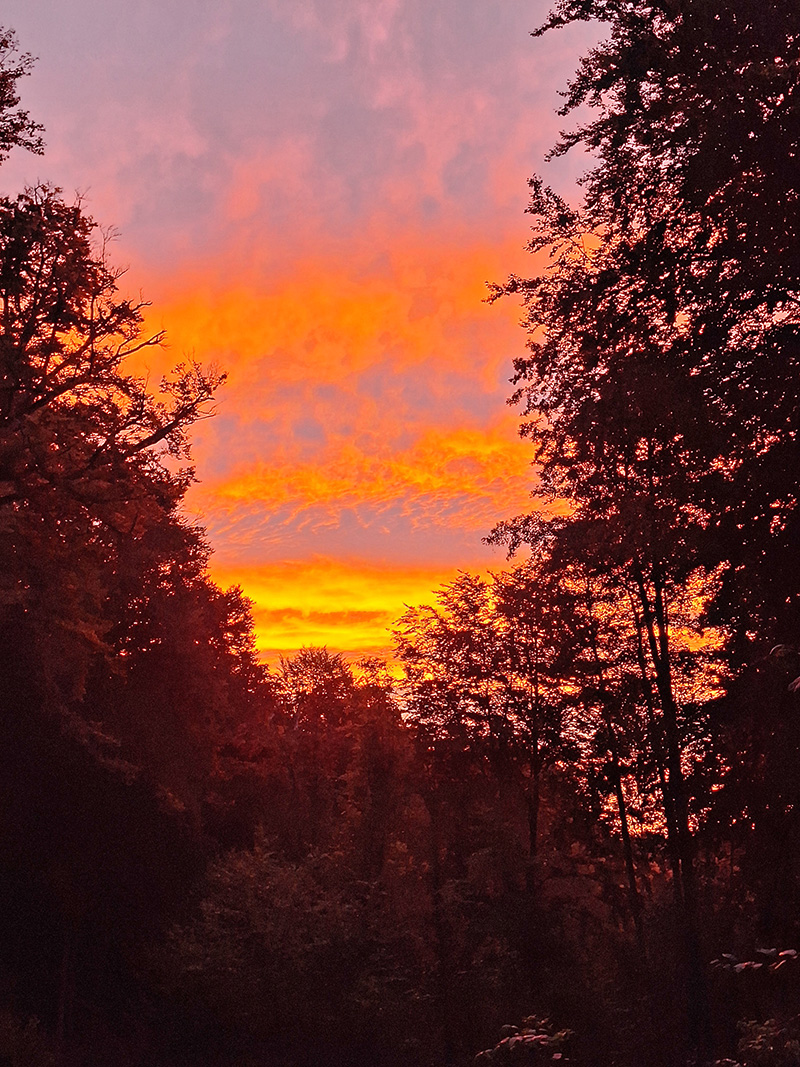 Jetzt, wo die Natur sich langsam auf den Winter vorbereitet kann man sagenhafte Sonnenaufgänge erleben, denn früh am Morgen ist es, egal zu welcher Jahreszeit immer am schönsten. Dann kann man die Stille des Waldes in Ruhe geniessen.