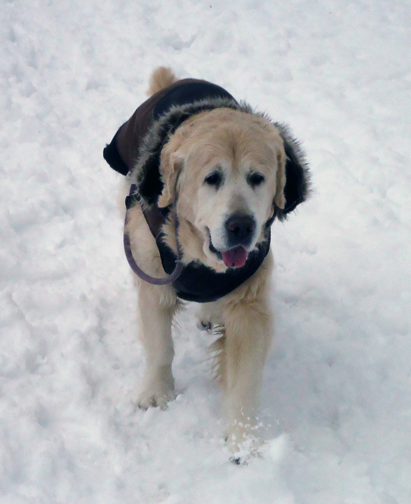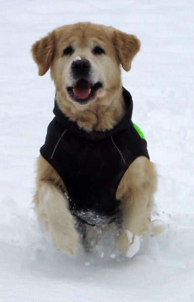 Am Nachmittag machten wir mit ihm einen Spaziergang durch noch unberührten Schnee. Er tobte und rannte ausgelassen herum und hatte jede Menge Spaß.