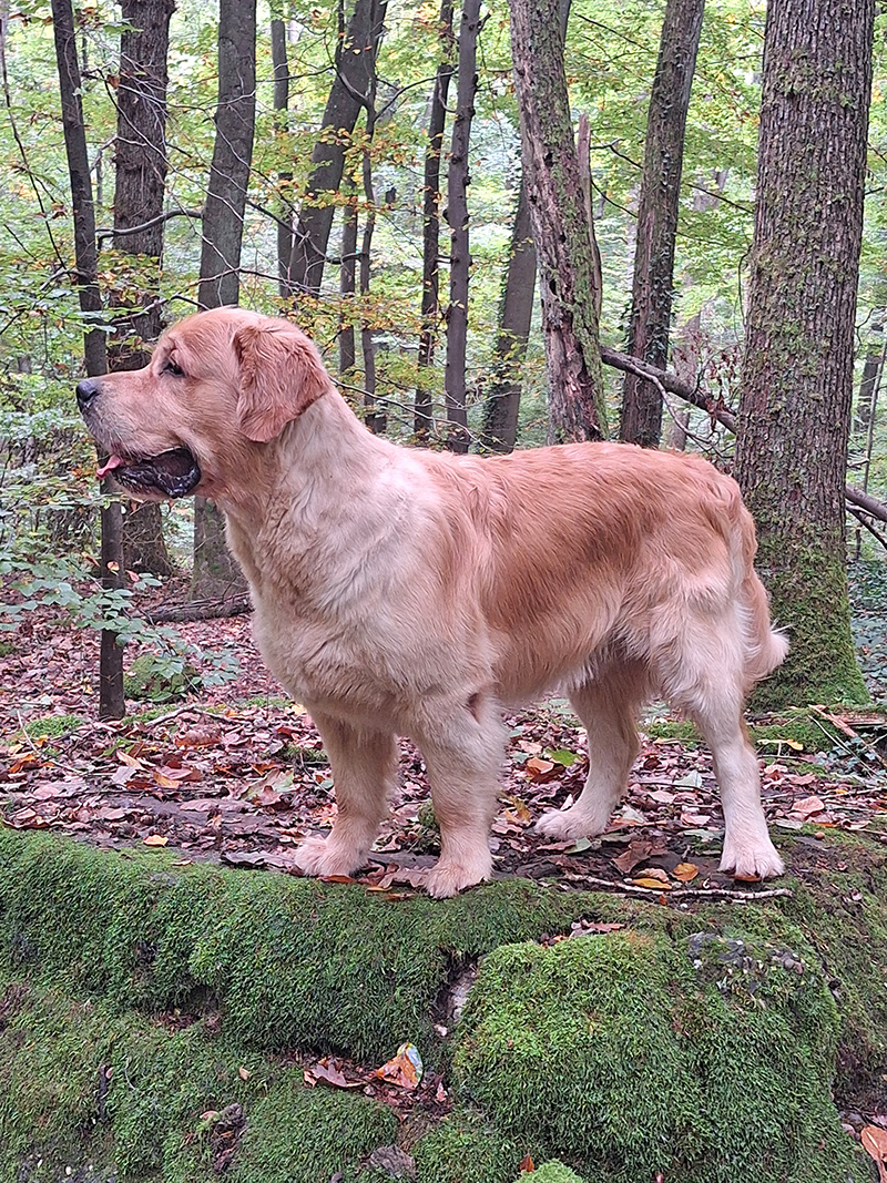 Wir sind unglaublich stolz auf unseren " Großen " und hoffen natürlich, daß er irgendwann einmal die Möglichkeit erhält, ein hübsches Golden - Mädchen decken zu dürfen.