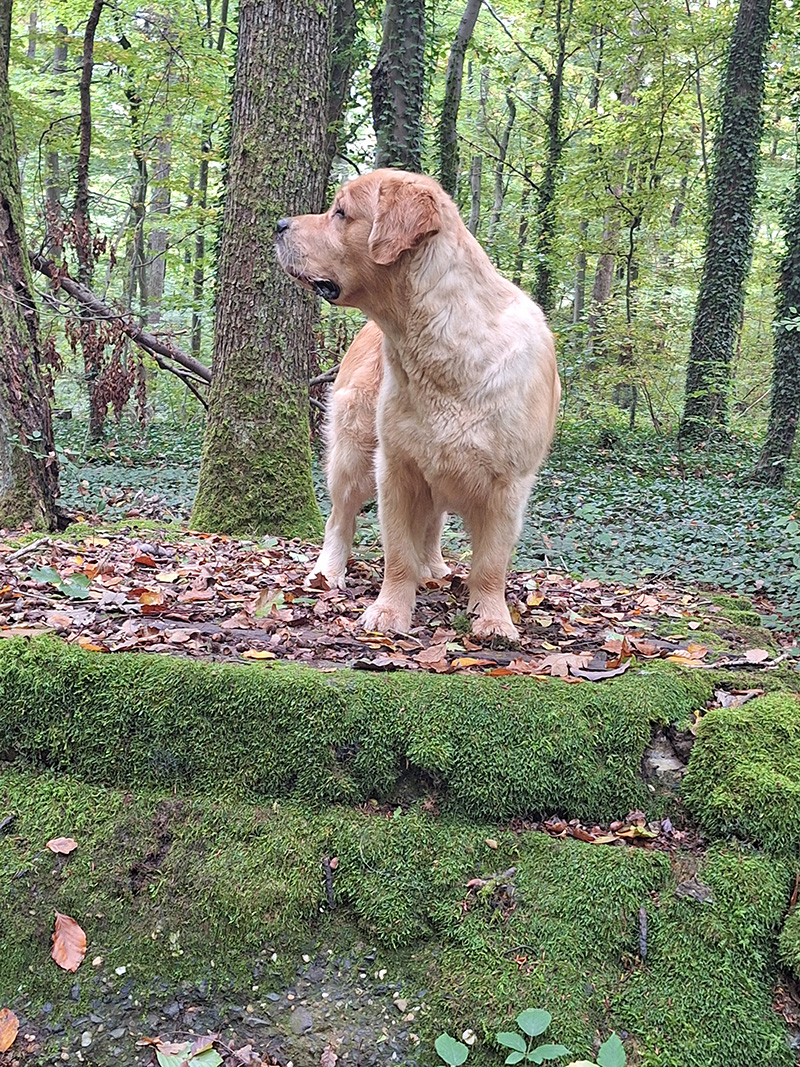 Jetzt, nachdem die Temperaturen nach dem warmen Sommer moderater geworden sind, freut sich Bruno umso mehr auf unsere täglichen Spazierrunden. Voller Tatendrang läuft er durch den Laubwald, allzeit bereit, den Ball, das Frauchen zufällig "verloren" hat, zu suchen und zurückzubringen. Auch versteckte Käsestückchen suchen, finden und futtern findet er mega klasse.